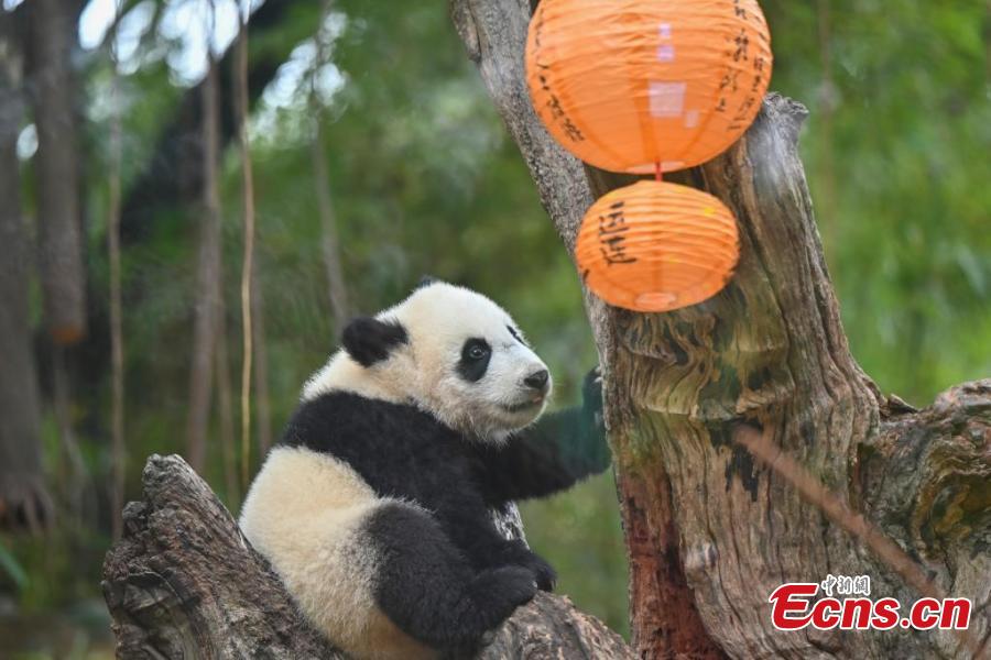 Giant panda cub enjoys special treat for Lantern Festival in Guangzhou