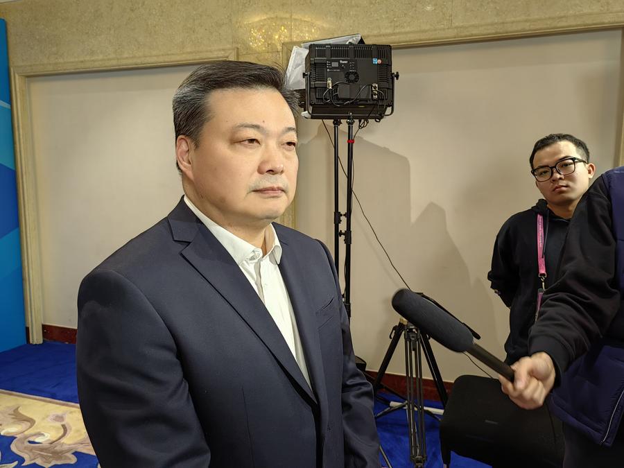 Wang Lei, director of China's Winter Sports Management Center, gives an interview during the Harbin 2025 Asian Winter Games, Feb. 13, 2025. (Xinhua/Wang Meng)