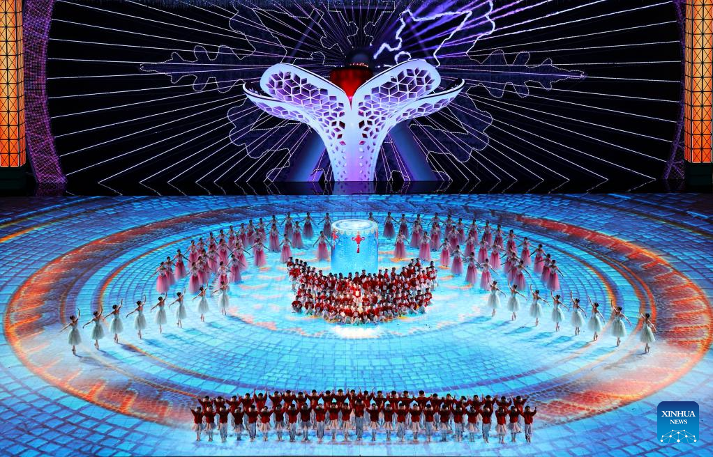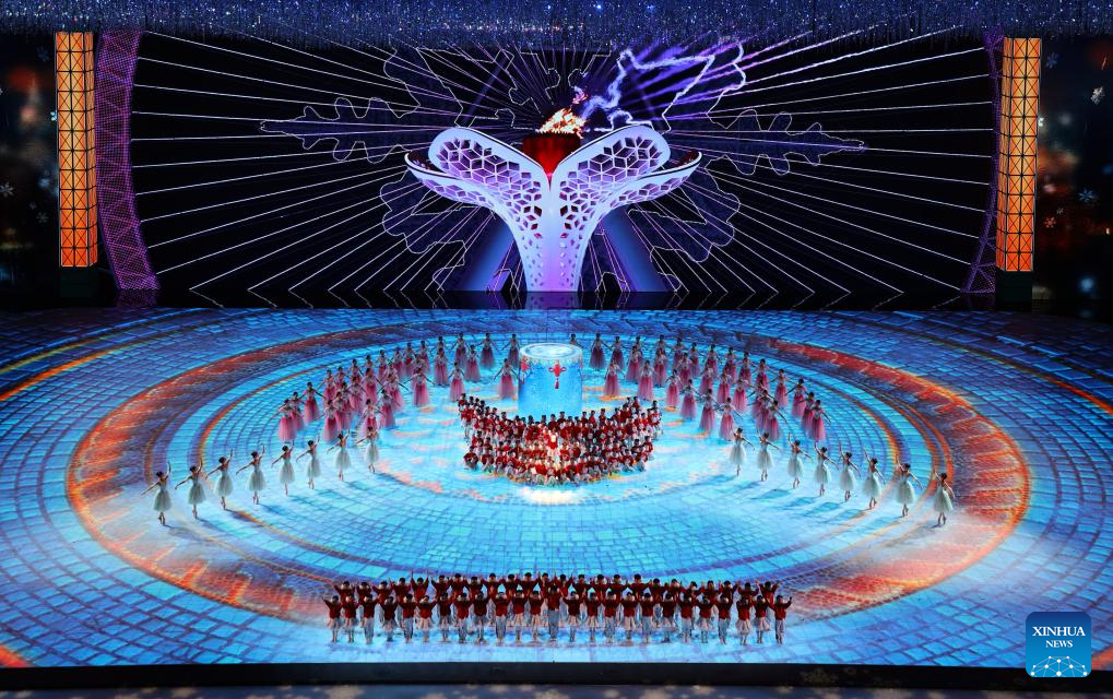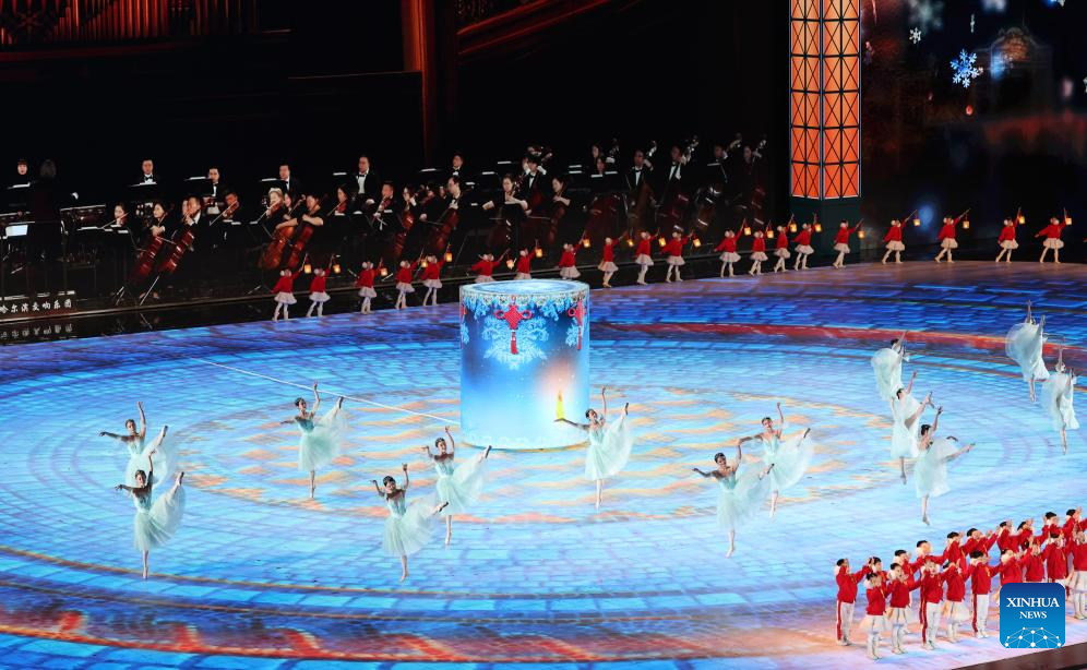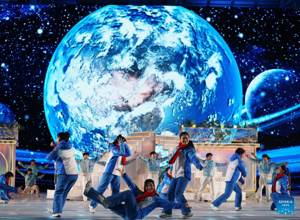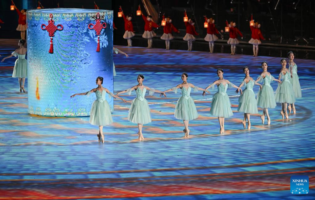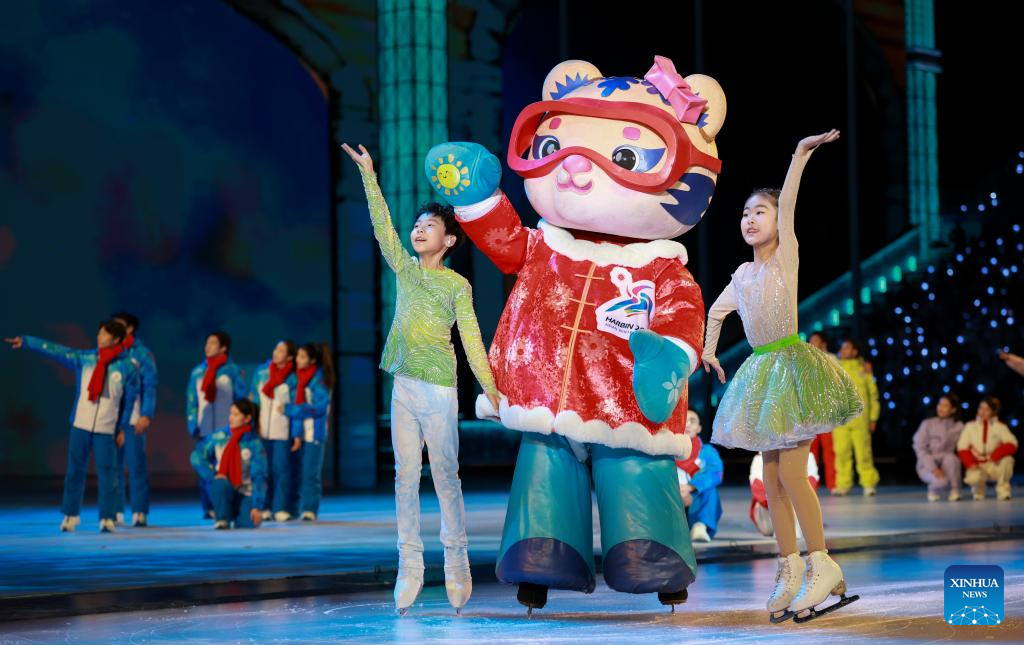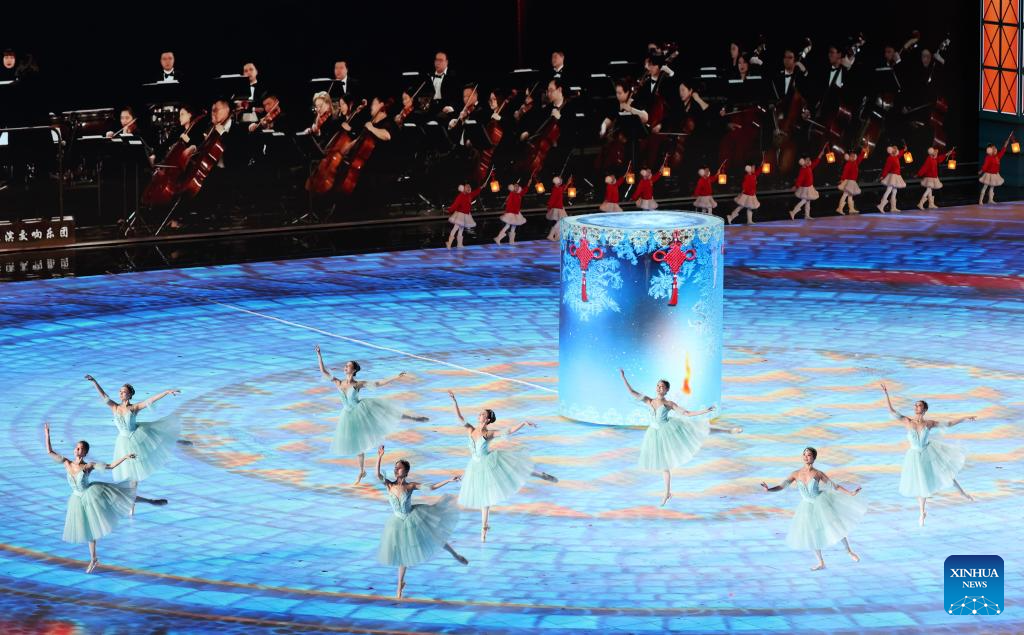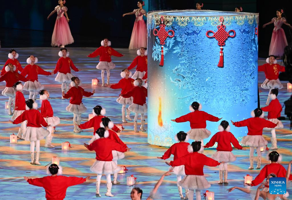 Artists perform during the closing ceremony of the 9th Asian Winter Games in Harbin, northeast China's Heilongjiang Province, Feb. 14, 2025. (Xinhua/Lai Xiangdong)
