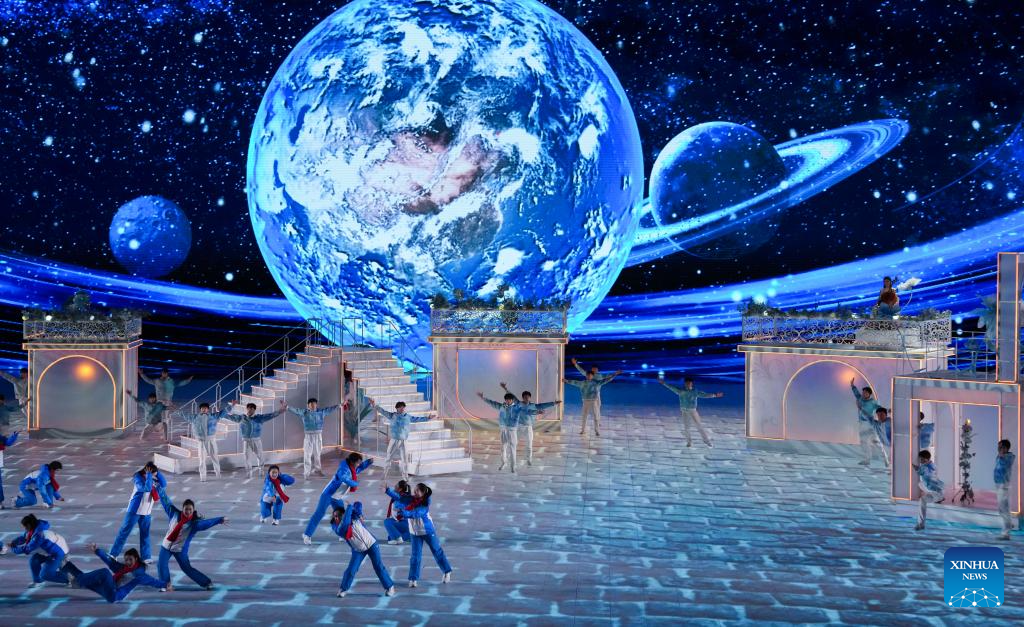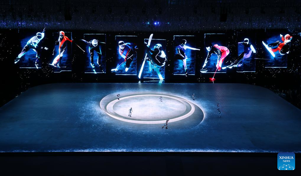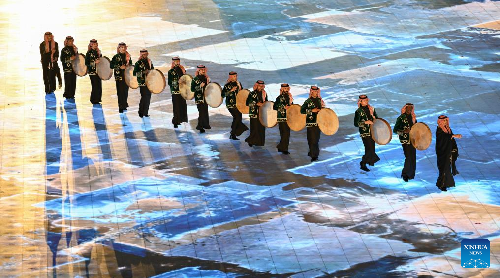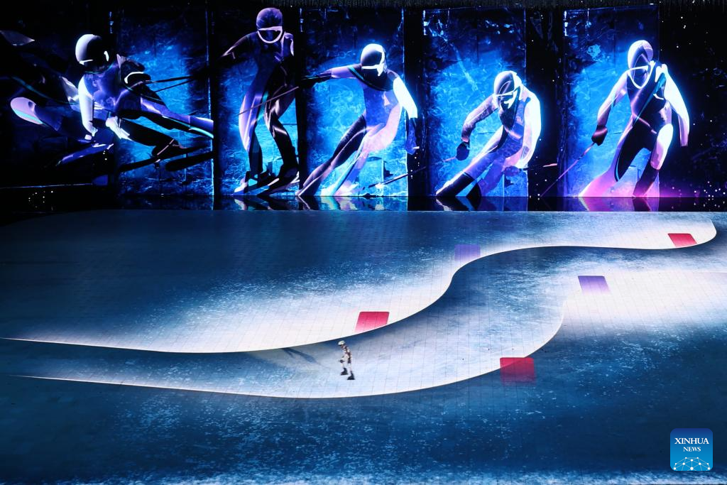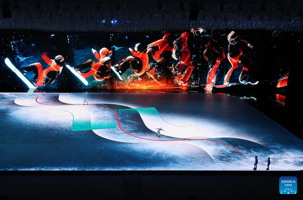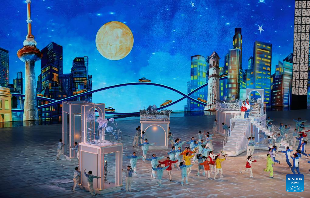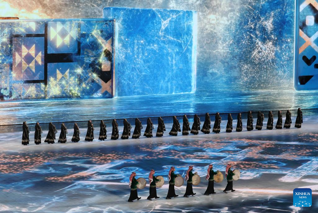 Artistic performance of the 10th Asian Winter Games host city Neom of Saudi Arabia is presented during the closing ceremony of the 9th Asian Winter Games in Harbin, northeast China's Heilongjiang Province, Feb. 14, 2025. (Xinhua/Lai Xiangdong)
