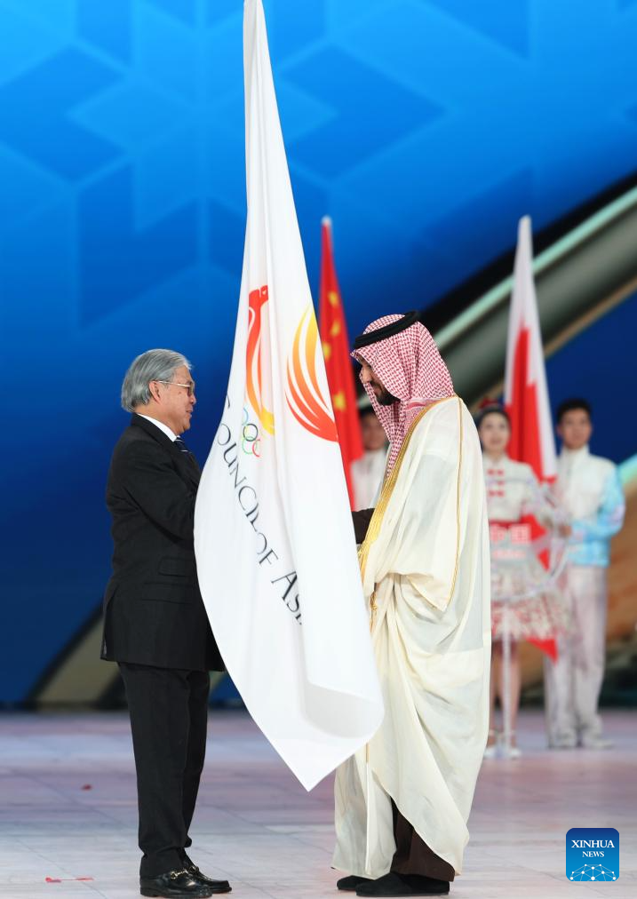 As the OCA flag was lowered and the OCA anthem played, Harbin's mayor Wang Hesheng handed the flag to Fok, who in turn entrusted it to the H.R.H. Prince Abdulaziz bin Turki Al-Faisal, Minister of Sports and president of the Saudi Arabia Olympic and Paralympic Committee. Saudi Arabia will host the Asian Winter Games for the first time in 2029.