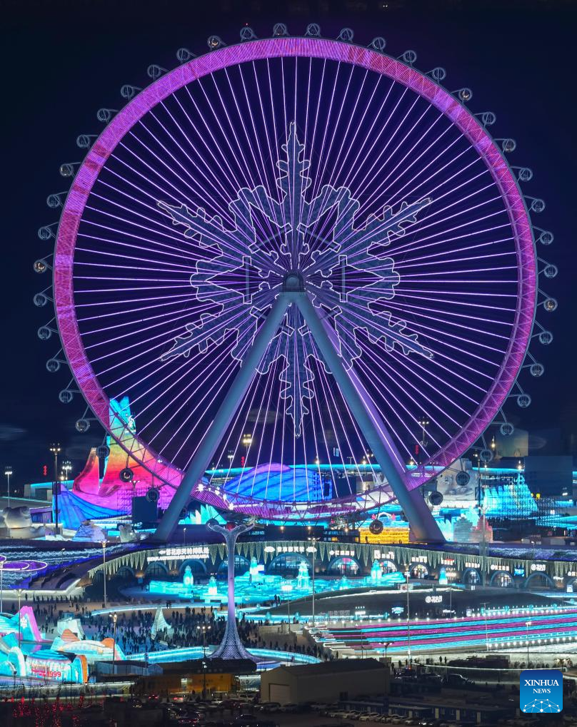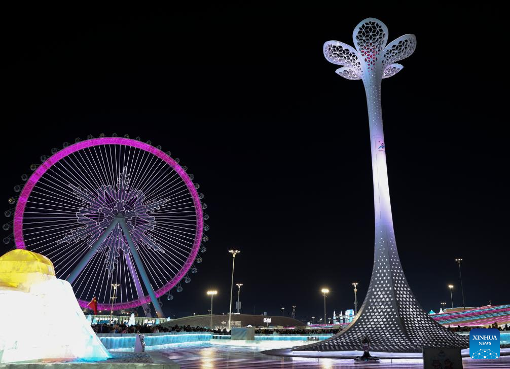 The Harbin Ice and Snow World Park is seen after the closing ceremony of the 9th Asian Winter Games in Harbin, northeast China's Heilongjiang Province, Feb. 14, 2025. (Xinhua/Sun Fei)