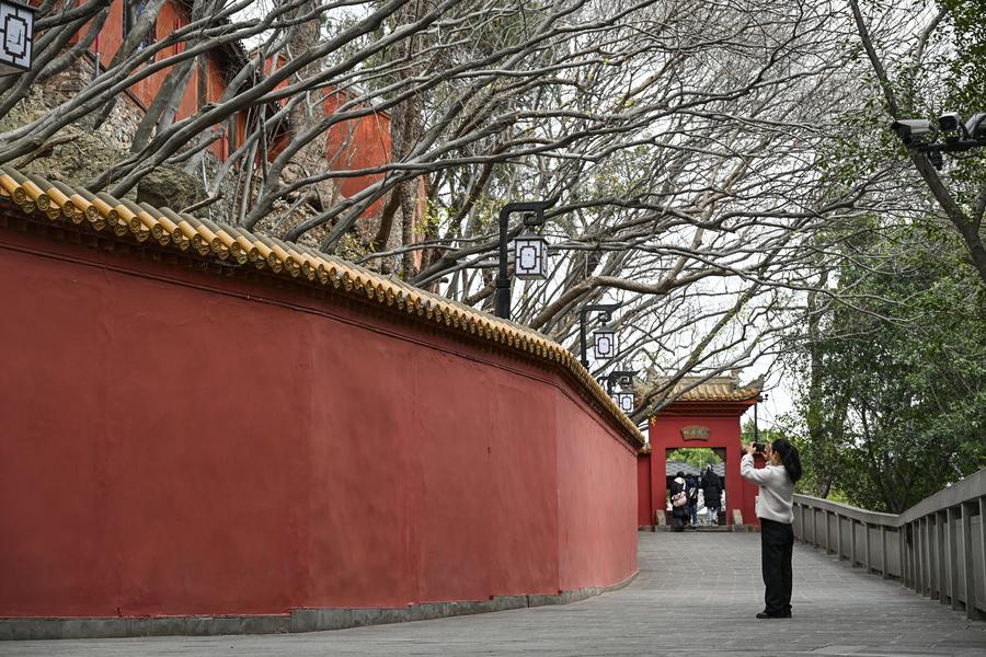A tourist takes photos in the ancient town of Baidi in Fengjie County, southwest China's Chongqing Municipality, Feb. 13, 2025. (Xinhua/Wang Quanchao)