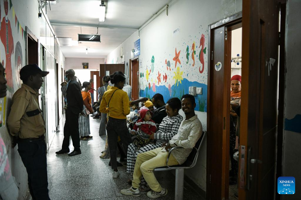 People wait for consultations at the Tirunesh Beijing General Hospital in Addis Ababa, Ethiopia, Feb. 14, 2025. The 25th Chinese medical team dispatched to Ethiopia arrived in the country in May 2024 and has been providing medical services for local patients and training for local doctors. The Tirunesh Beijing General Hospital was also built as part of long-standing assistance efforts of the Chinese government. (Xinhua/Han Xu)