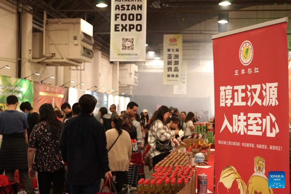 People visit the seventh Authentic Asian Food Expo in Pomona city, California, the United States, on Feb. 15, 2025. (Photo by Zeng Hui/Xinhua)
