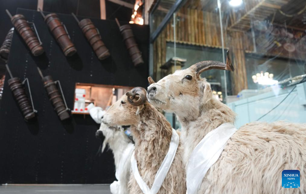 This photo taken on Feb. 13, 2025 shows an animal specimen at a Tibetan-style teahouse in Seni District of Nagqu, southwest China's Xizang Autonomous Region. Covering an area of around 1,200 square meters, the Tibetan-style teahouse presents customers with both Tibetan delicacies and immersive experiences of folklore culture. Themed over 3,000 pieces of traditional Tibetan folk artifacts, the teahouse offers a lens through which people can learn about the northern Xizang nomadic culture. (Xinhua/Jigme Dorje)