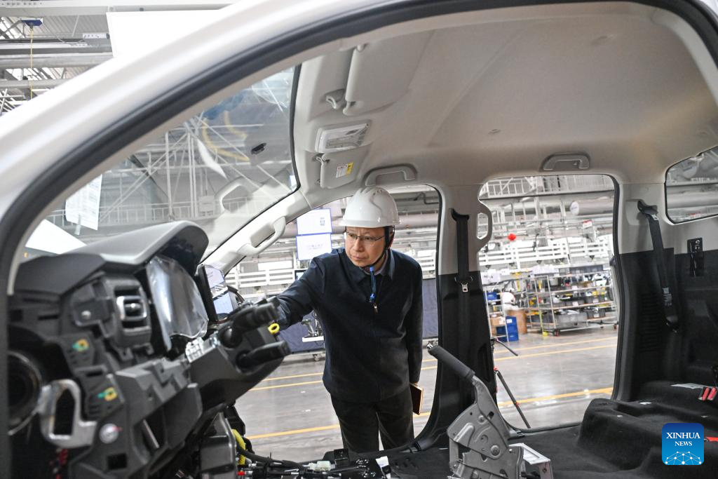 Fu Guotao conducts a survey at an intelligent production base of the Great Wall Motors (GWM) in Yongchuan District of Chongqing, southwest China, Feb. 11, 2025. (Xinhua/Wang Quanchao)
