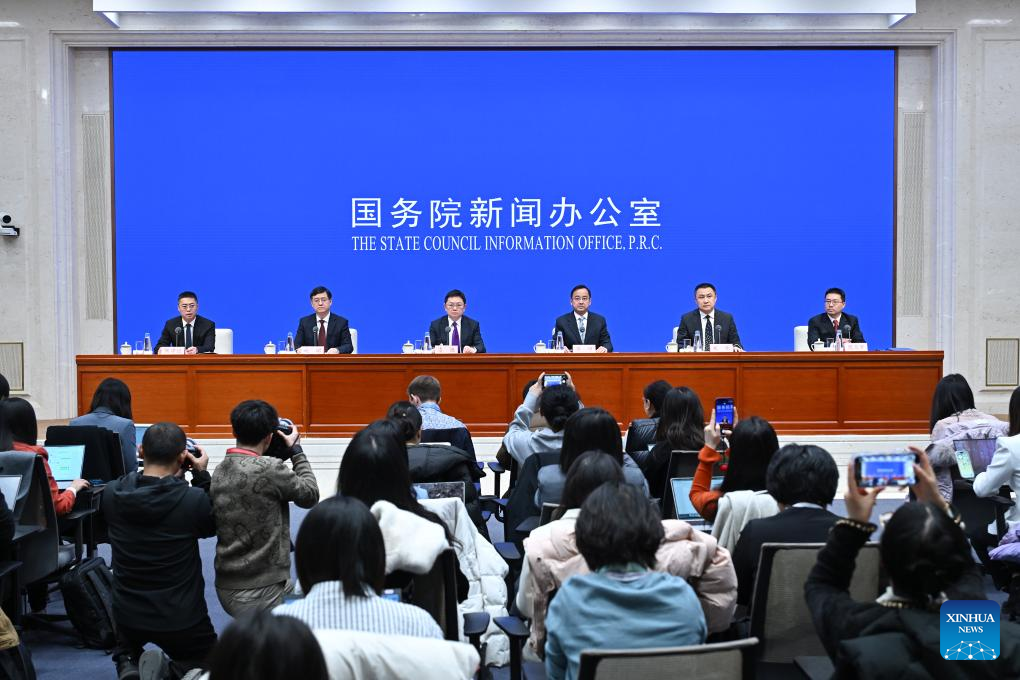 A policy briefing on expanding high-standard opening up and ensuring foreign investment stability in 2025 is held by the State Council Information Office in Beijing, capital of China, Feb. 20, 2025. (Xinhua/Li Xin)