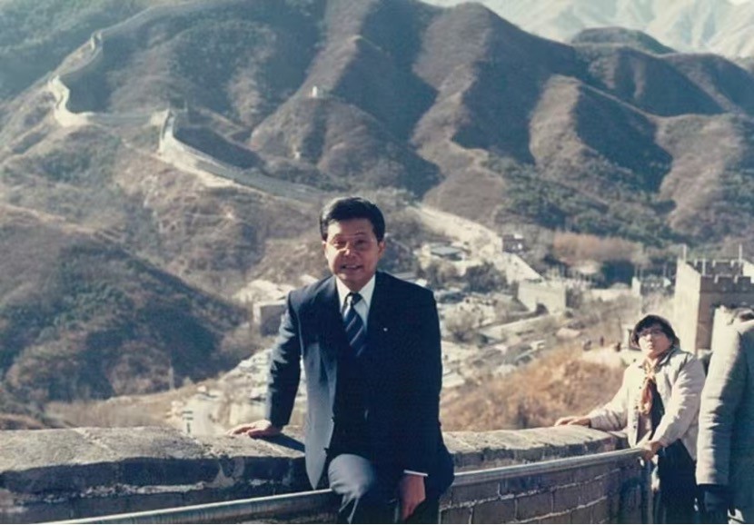 Wakabayashi Mutsuhiro poses for a photo on the Great Wall in Beijing in 1990. (Photo courtesy of Wakabayashi Mutsuhiro)