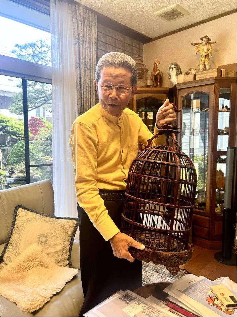 Wakabayashi Mutsuhiro displays the birdcage he purchased in China. (Photo courtesy of Wakabayashi Mutsuhiro)