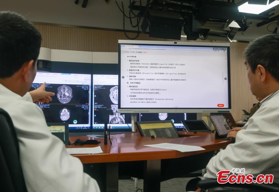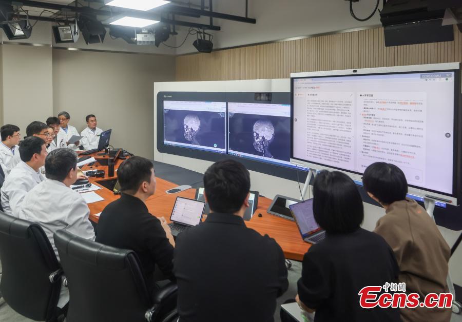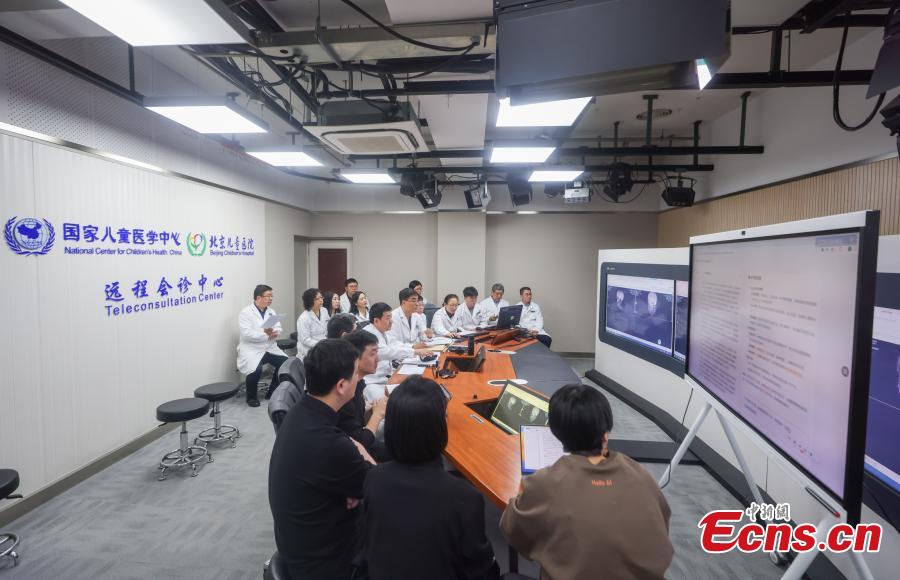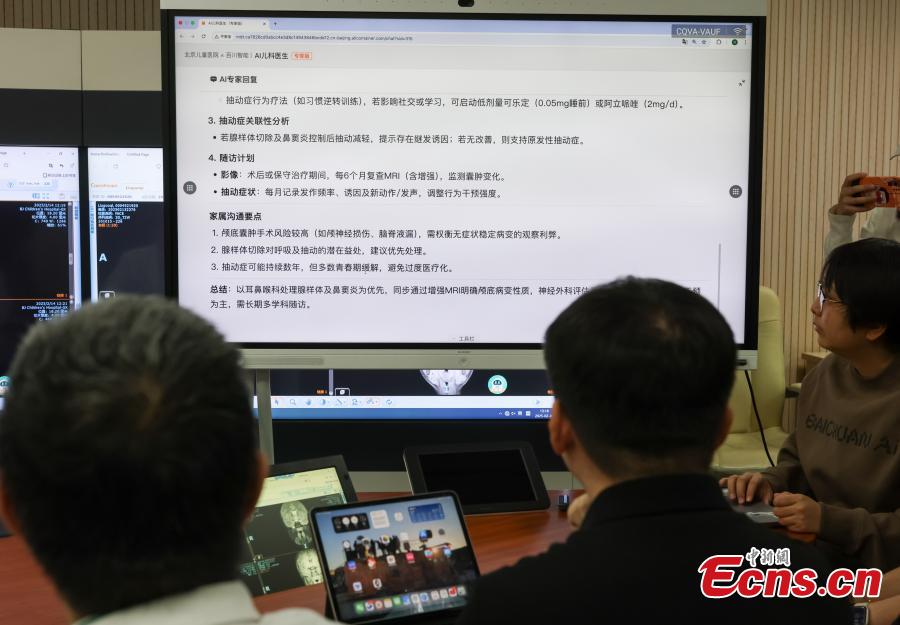 Pediatricians work with an artificial intelligence (AI) model specializing in pediatrics at Beijing Children's Hospital, Feb. 20, 2025. (China News Service/Jia Tianyong)