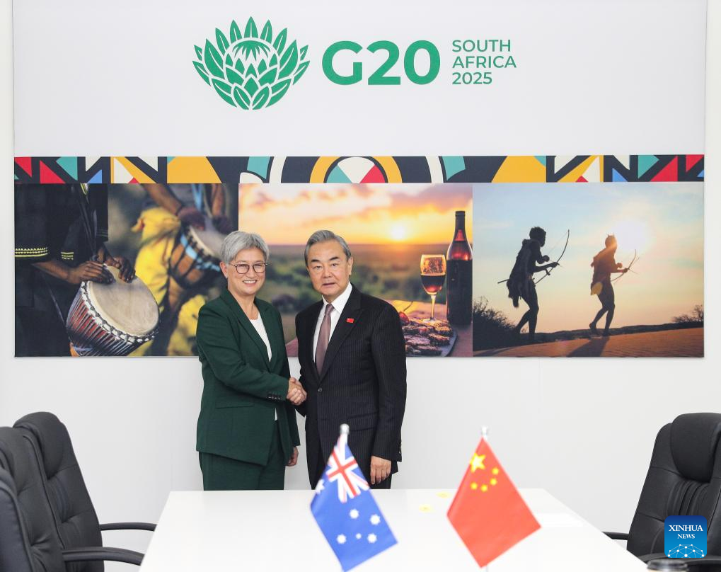 JOHANNESBURG, Feb. 22 (Xinhua) -- The return of China-Australia relations to a path of sound and stable development serves the common interests of both sides and aligns with the aspirations of their peoples, Chinese Foreign Minister Wang Yi said while meeting with his Australian counterpart, Penny Wong, in Johannesburg, South Africa, on Friday.