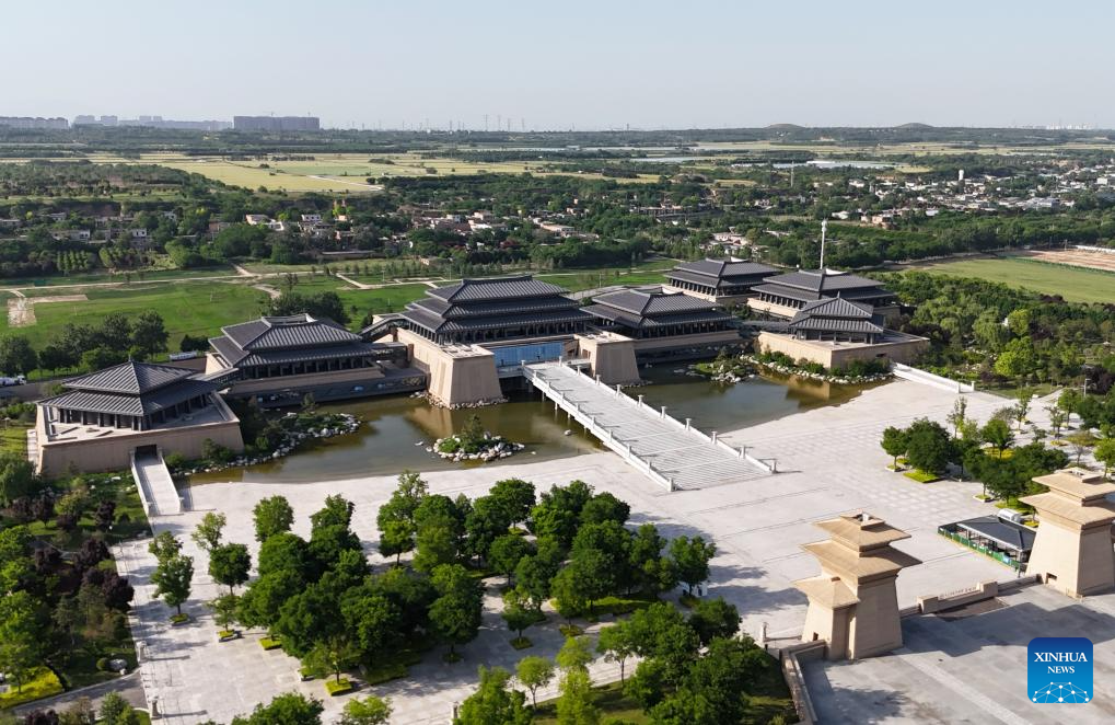 An aerial drone photo shows the Qin Han Museum of the Shaanxi History Museum in Xi'an, northwest China's Shaanxi Province, May 13, 2024. As the provincial capital of northwest China's Shaanxi Province, Xi'an, with a history of over 3,100 years, has served as the capital city for 13 dynasties of China. Under the policies of protection and utilization of cultural relics, the historical and cultural resources of Xi'an have been well preserved. (Xinhua/Li Yibo)