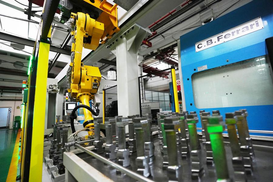 This photo taken on Feb. 26, 2025 shows smart equipment processing coil products at a coil factory in Harbin Electric Machinery Company Ltd. in Harbin, northeast China's Heilongjiang Province. (Xinhua/Wang Song)