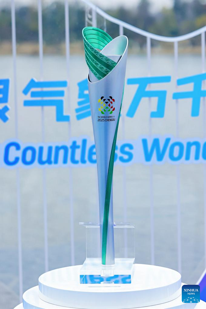 The torch named "Zhu Meng" (Dream of Bamboo) of the World Games 2025 is released in Chengdu, southwest China's Sichuan Province on Feb. 27, 2025. (Xinhua)