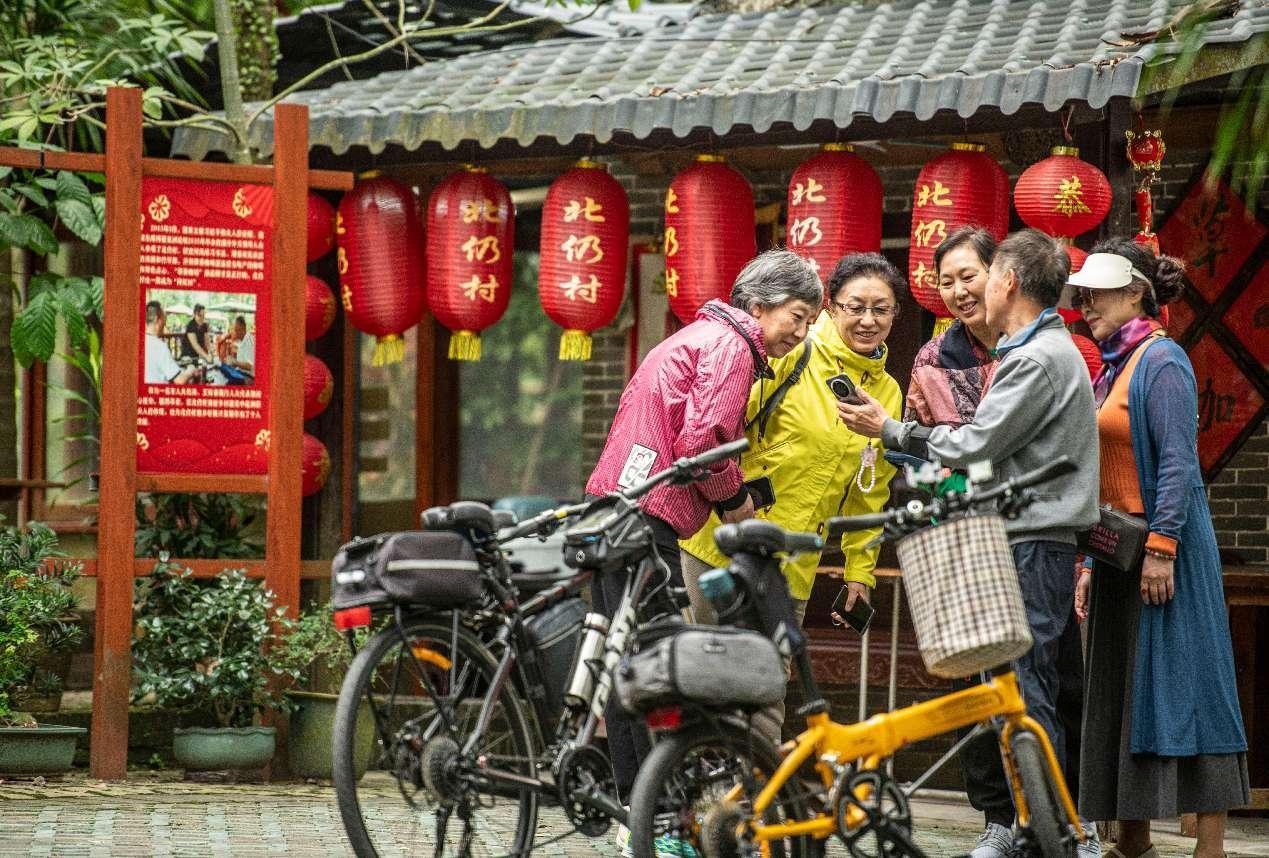 Senior tourists visit a scenic spot in Beireng village, Jiaji township, Qionghai, south China's Hainan province, Dec. 15, 2024. (People's Daily Online/Meng Zhongde)