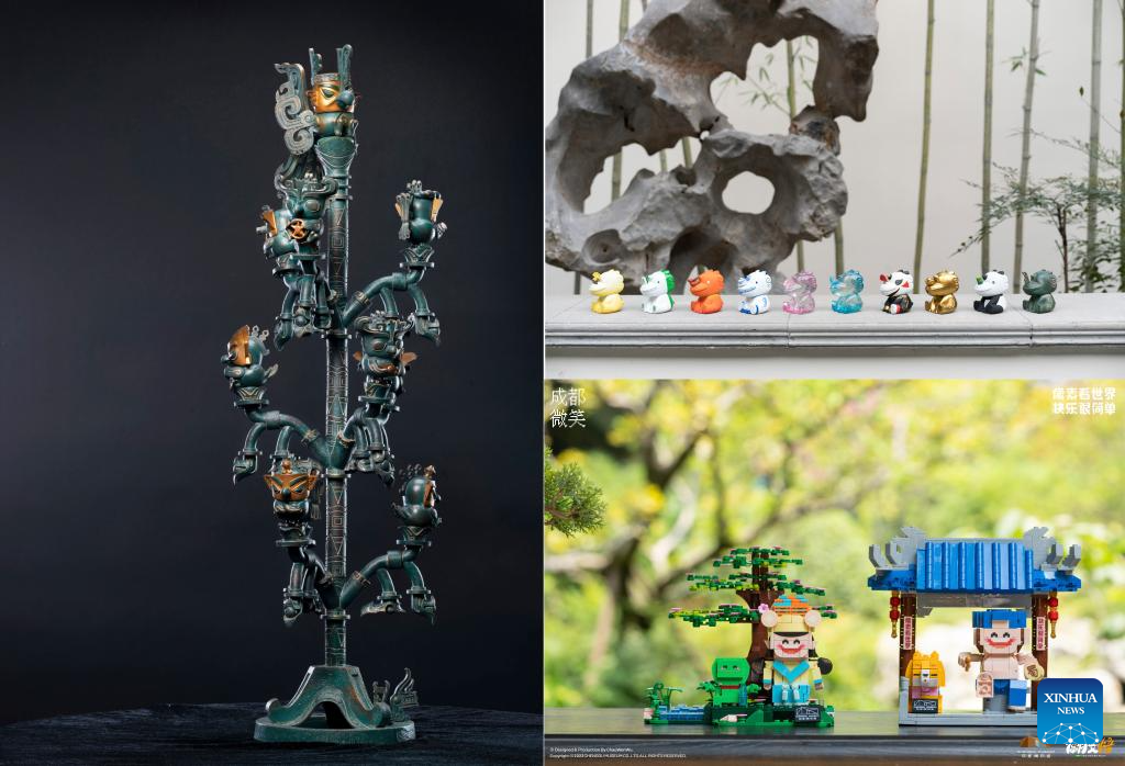 This undated combo photo shows some of the cultural creative products designed by Zeng Zhou. Zeng Zhou, a cultural creative product designer and planning operator born in the 1990s, has been fascinated with animation and movie peripheral products as well as trendy toys and figurines since his childhood, dreaming of developing cultural creative products that embody the charm of traditional Chinese culture.