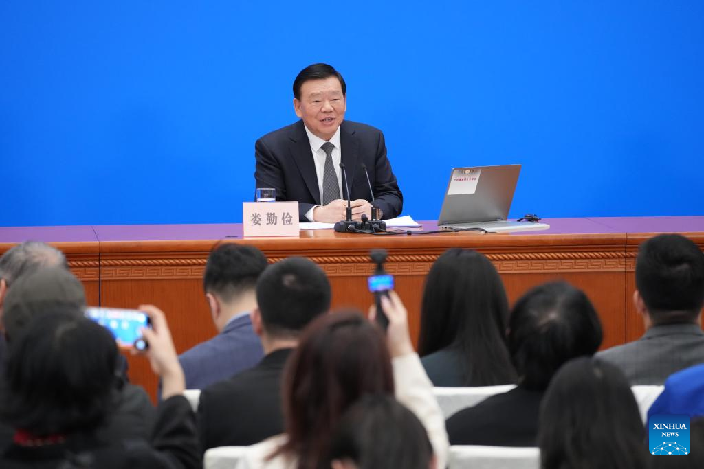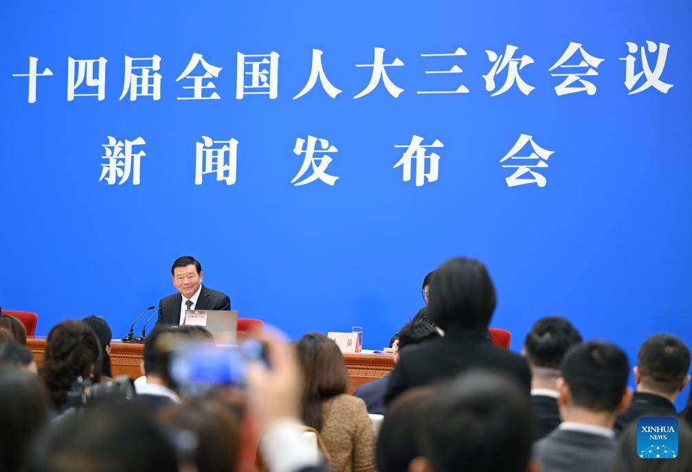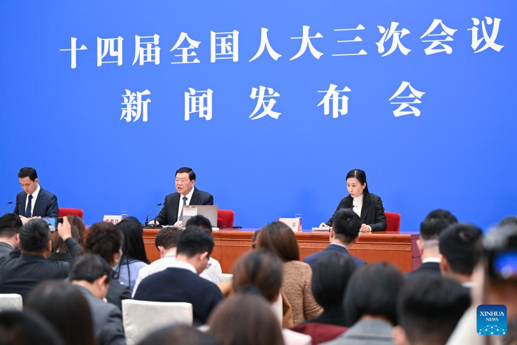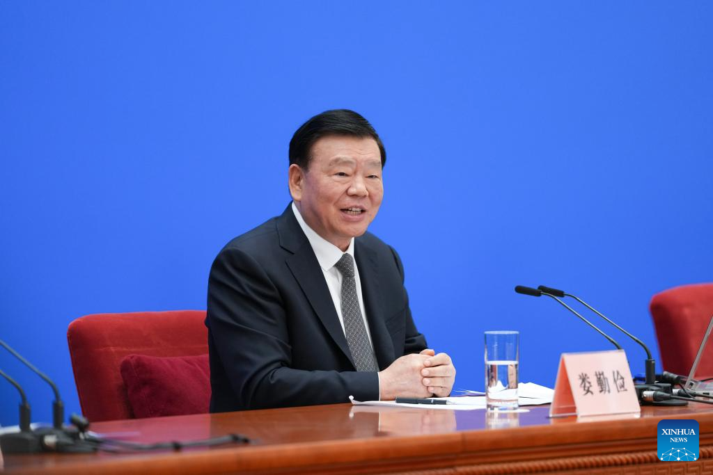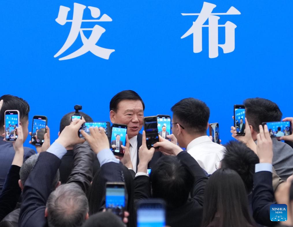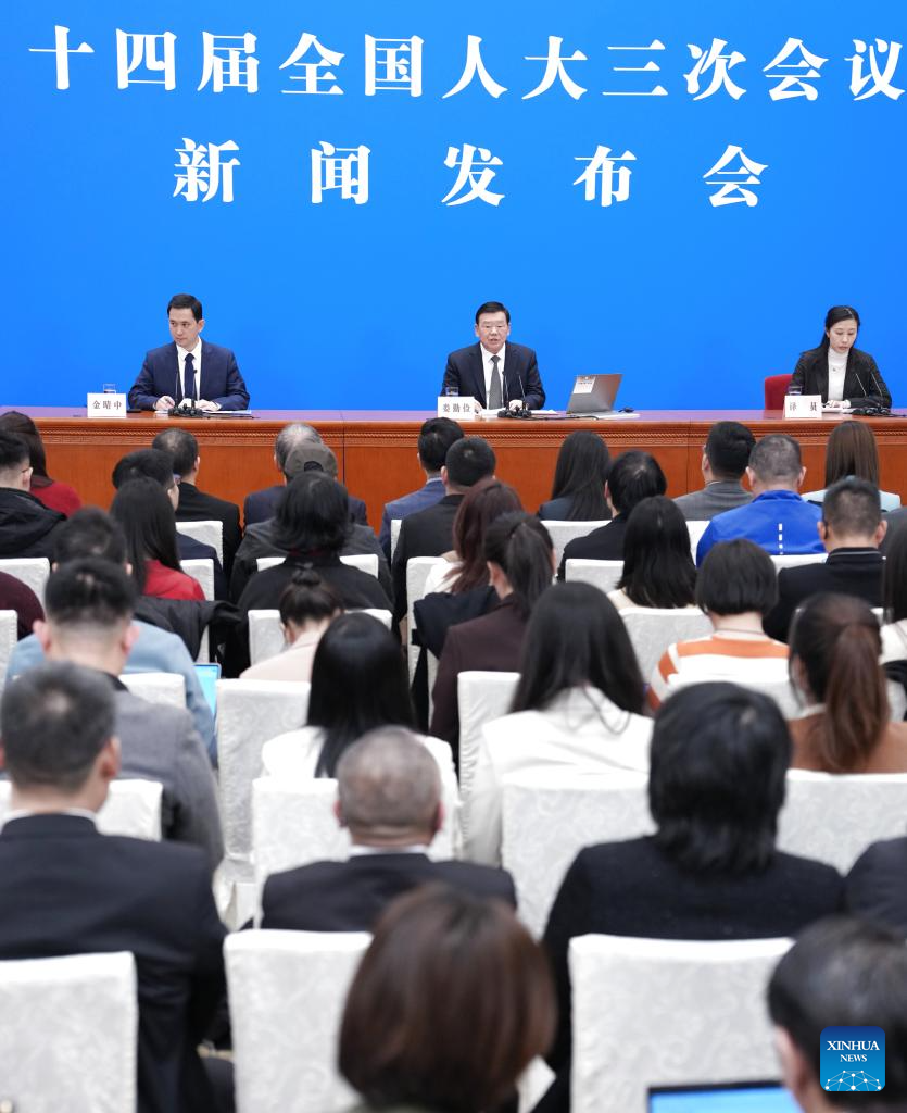 Lou Qinjian, spokesperson for the third session of the 14th National People's Congress (NPC), attends a press conference at the Great Hall of the People in Beijing, capital of China, March 4, 2025. The NPC, China's national legislature, held a press conference on Tuesday, one day ahead of the opening of its annual session. (Xinhua/Chen Yehua)