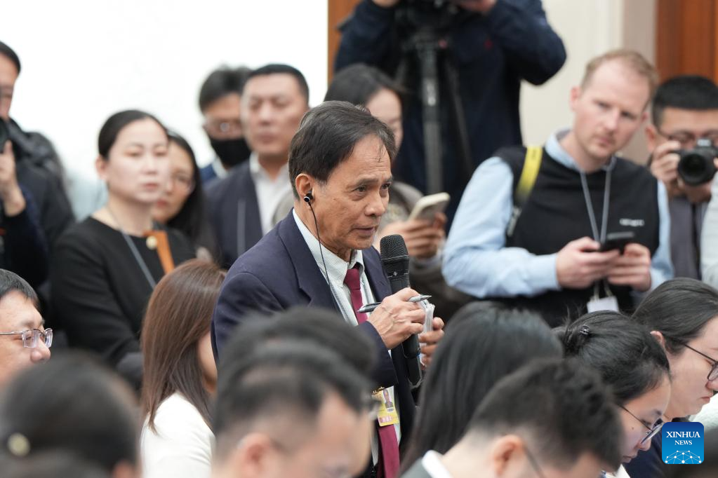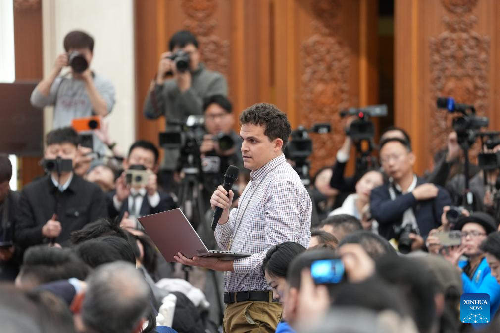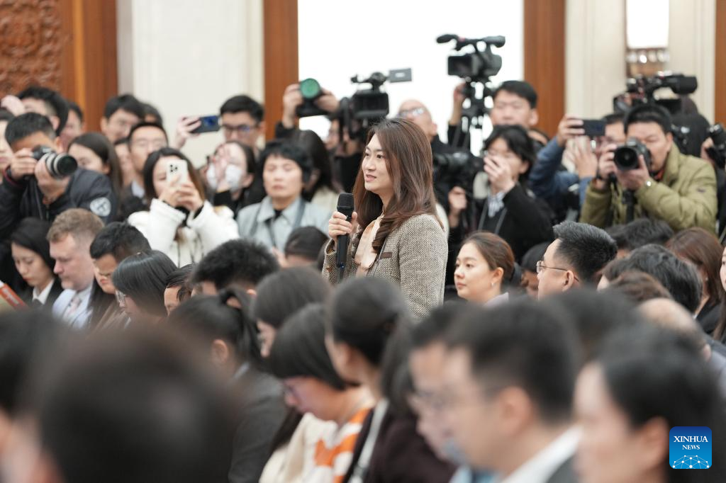A journalist asks a question at a press conference of the third session of the 14th National People's Congress (NPC) at the Great Hall of the People in Beijing, capital of China, March 4, 2025. The NPC, China's national legislature, held a press conference on Tuesday, one day ahead of the opening of its annual session. (Xinhua/Chen Yehua)