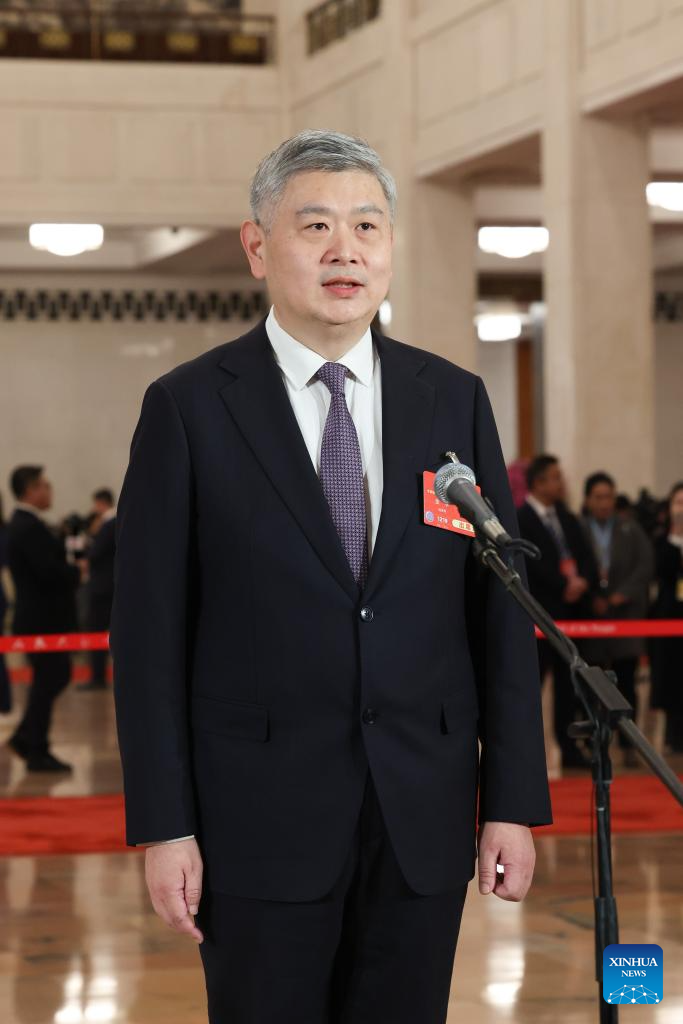 Yan Jianbing, a member of the 14th National Committee of the Chinese People's Political Consultative Conference (CPPCC), attends a group interview ahead of the opening meeting of the third session of the 14th CPPCC National Committee at the Great Hall of the People in Beijing, capital of China, March 4, 2025. (Xinhua/Zhang Yuwei)