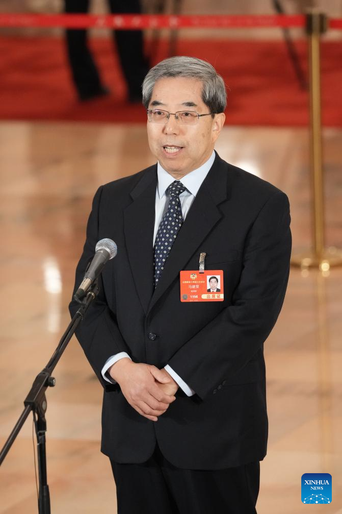 Ma Jiantang, a member of the 14th National Committee of the Chinese People's Political Consultative Conference (CPPCC), attends a group interview ahead of the opening meeting of the third session of the 14th CPPCC National Committee at the Great Hall of the People in Beijing, capital of China, March 4, 2025. (Xinhua/Zhou Dixiao)