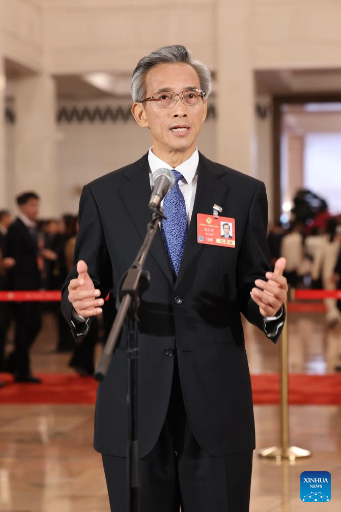 Lin Songtian, a member of the 14th National Committee of the Chinese People's Political Consultative Conference (CPPCC), attends a group interview ahead of the opening meeting of the third session of the 14th CPPCC National Committee at the Great Hall of the People in Beijing, capital of China, March 4, 2025. (Xinhua/Yin Gang)