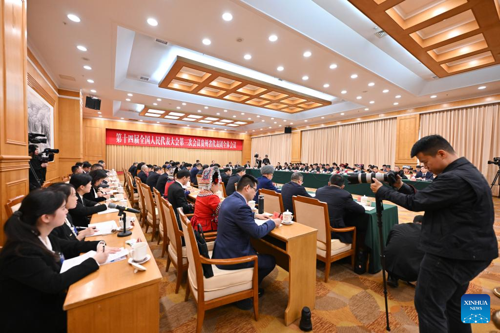 A group meeting of deputies from the delegation of Guizhou Province is held at the third session of the 14th National People's Congress (NPC) in Beijing, capital of China, March 6, 2025. (Xinhua/Xu Bingjie)