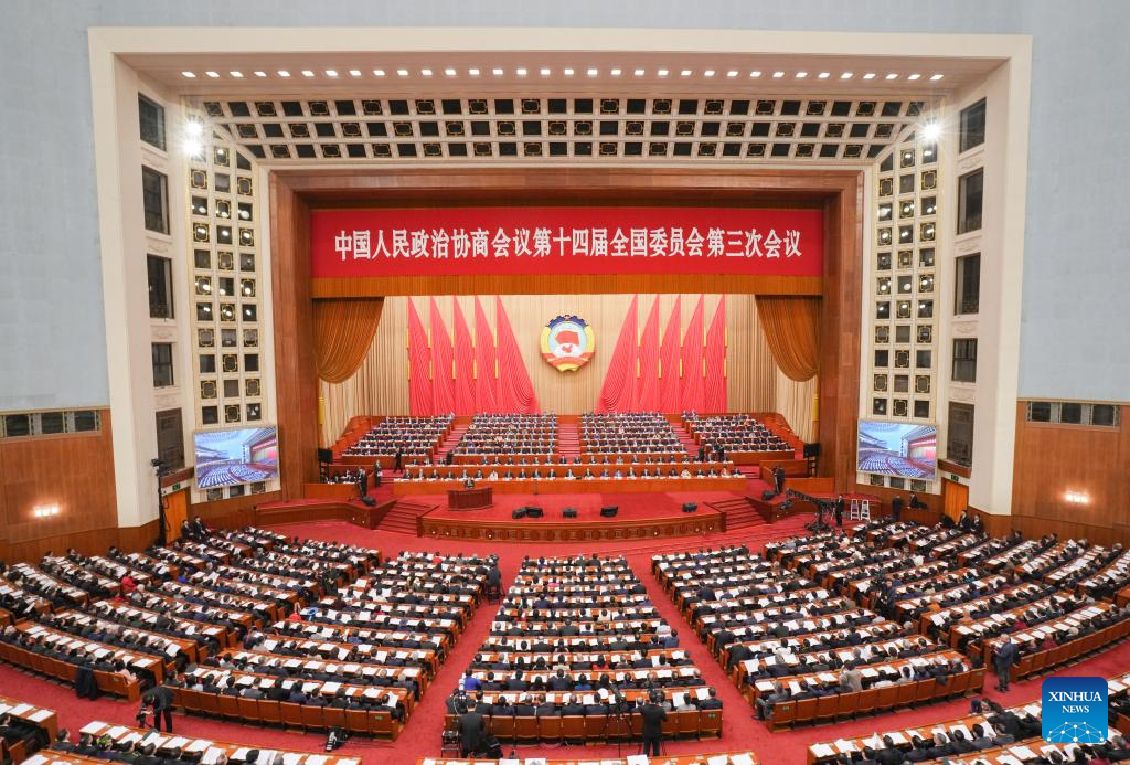 The second plenary meeting of the third session of the 14th National Committee of the Chinese People's Political Consultative Conference (CPPCC) is held at the Great Hall of the People in Beijing, capital of China, March 7, 2025. (Xinhua/Zhou Dixiao)
