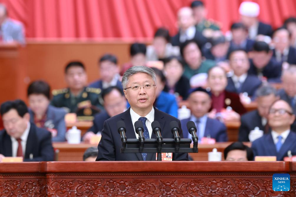 Wang Guosheng, a member of the 14th National Committee of the Chinese People's Political Consultative Conference (CPPCC), speaks at the second plenary meeting of the third session of the 14th CPPCC National Committee at the Great Hall of the People in Beijing, capital of China, March 7, 2025. (Xinhua/Wang Ye)