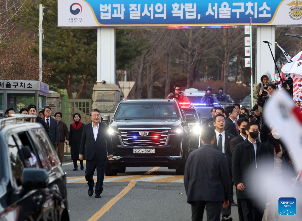 SEOUL, March 8 (Xinhua) -- South Korean President Yoon Suk-yeol was released Saturday as the prosecution decided not to appeal against a court's release approval.