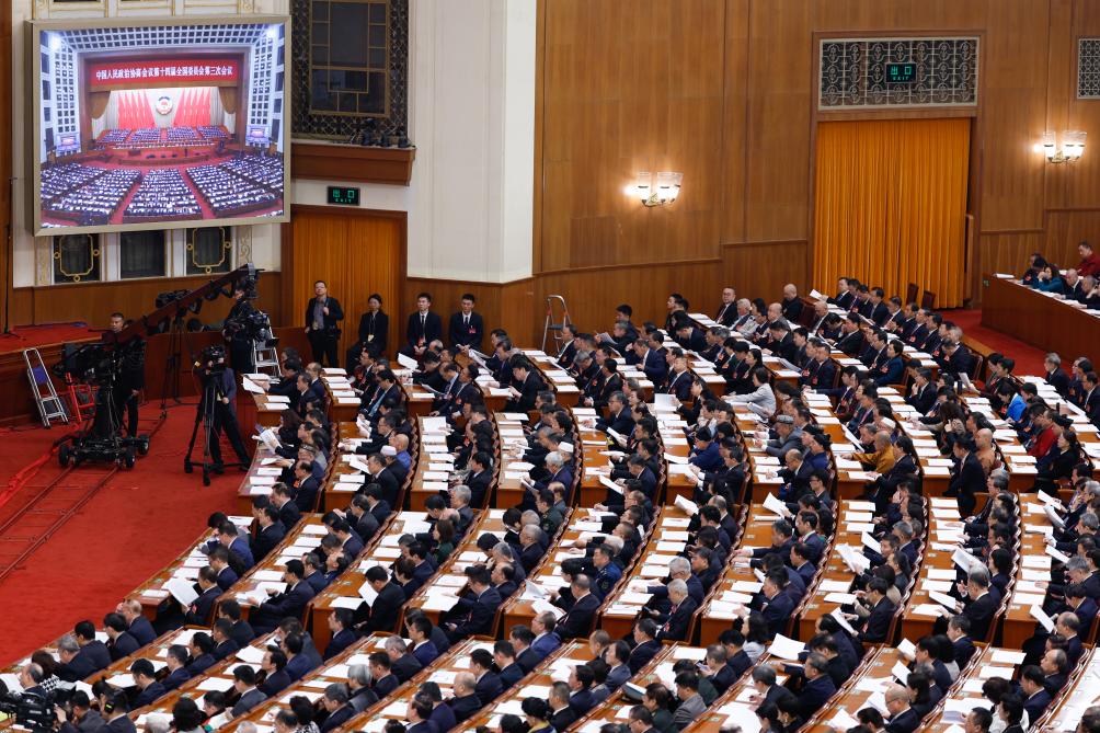 The third plenary meeting of the third session of the 14th National Committee of the Chinese People's Political Consultative Conference (CPPCC) is held at the Great Hall of the People in Beijing, capital of China, March 9, 2025. (Xinhua/Rao Aimin)