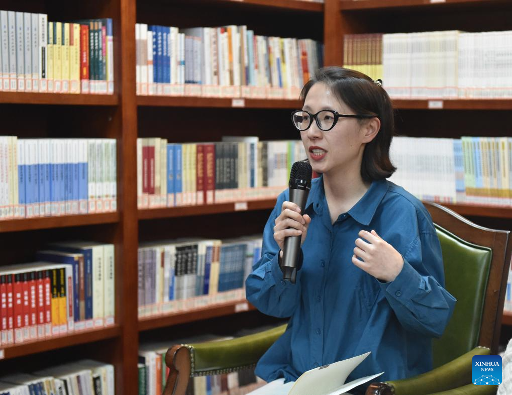 Yan Xingran, a judge with the People's Court of Haidian District of Beijing, gives a lecture at the administration office of Summer Palace in Beijing, capital of China, March 4, 2025.(Xinhua/Ren Chao)