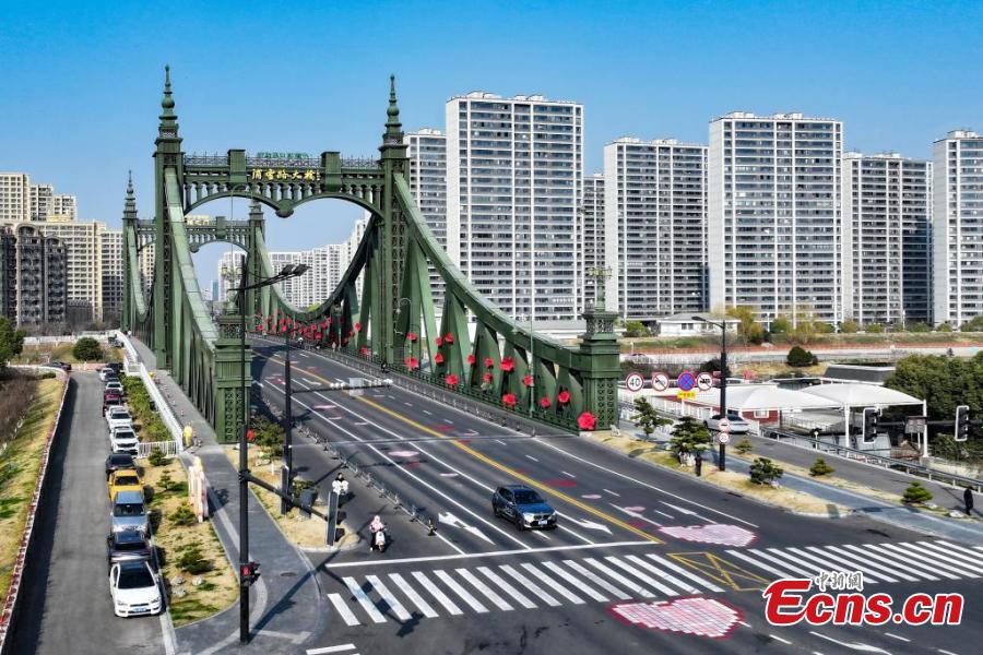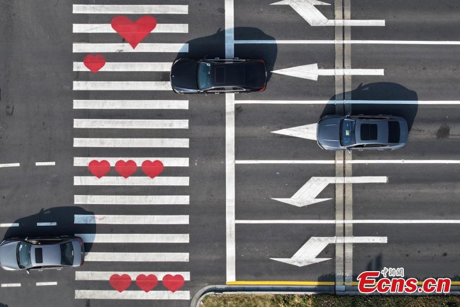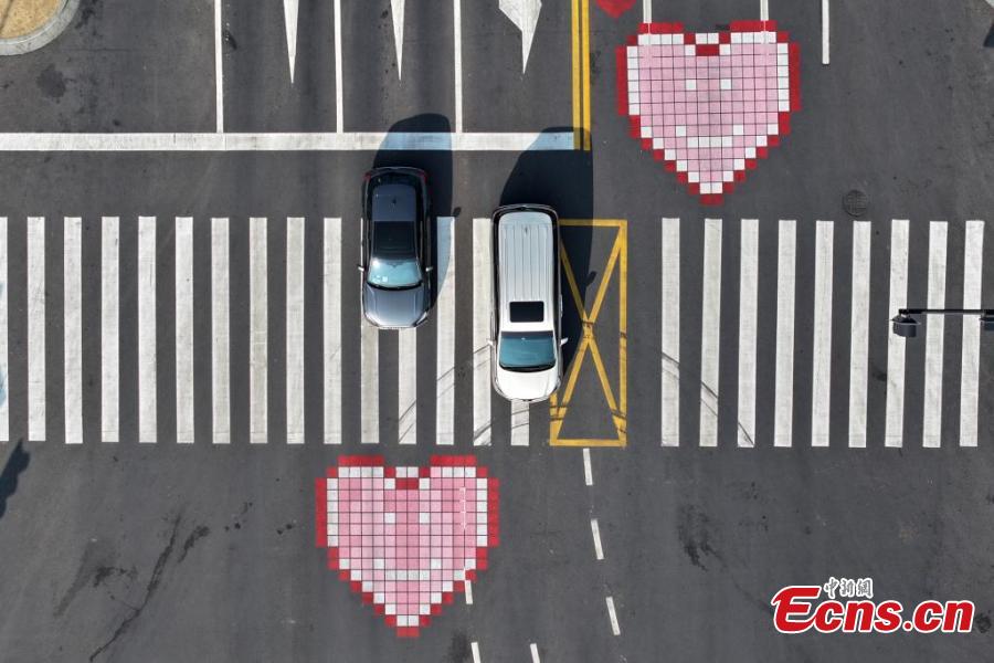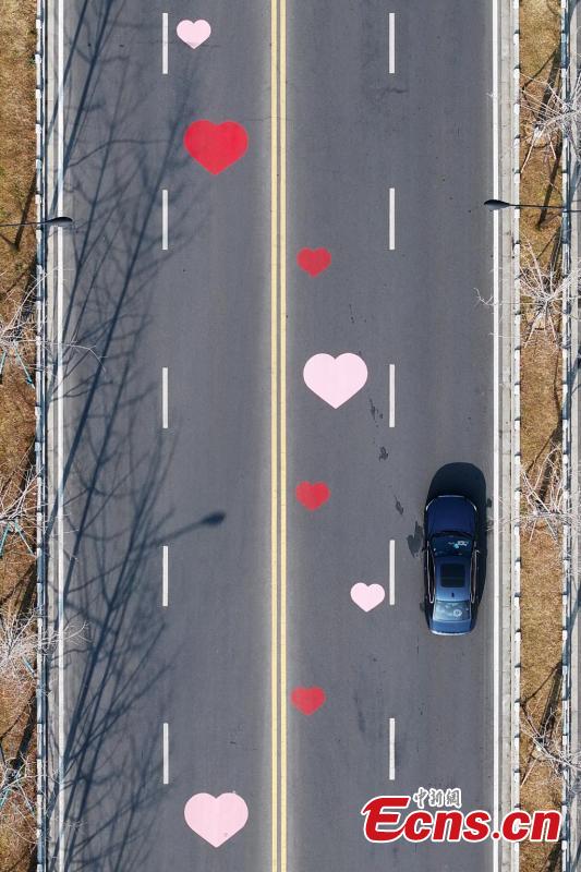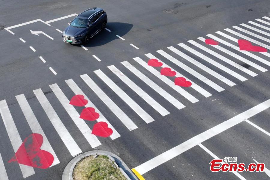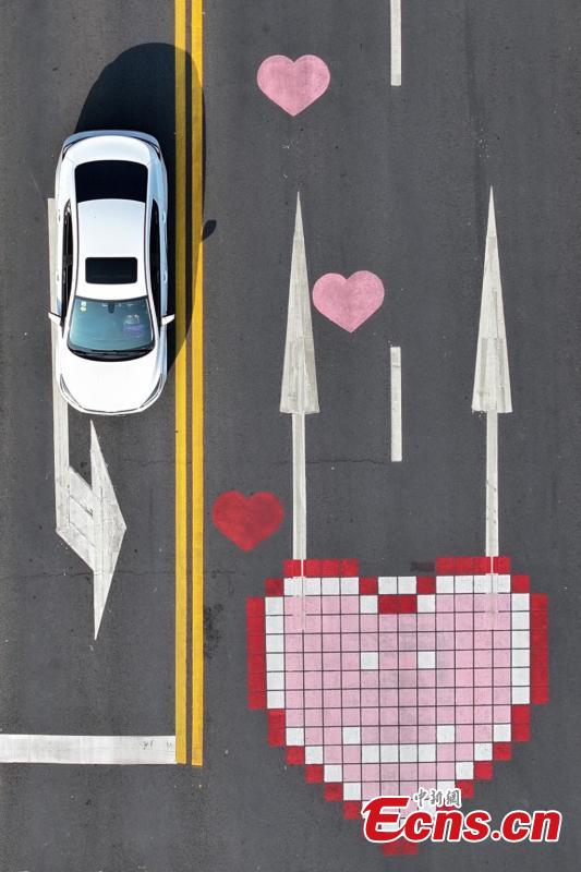 Heart paintings on pavement in Nanjing become the city's new landmark in east China's Jiangsu Province, March. 10, 2025. (China News Service/Yang Bo)