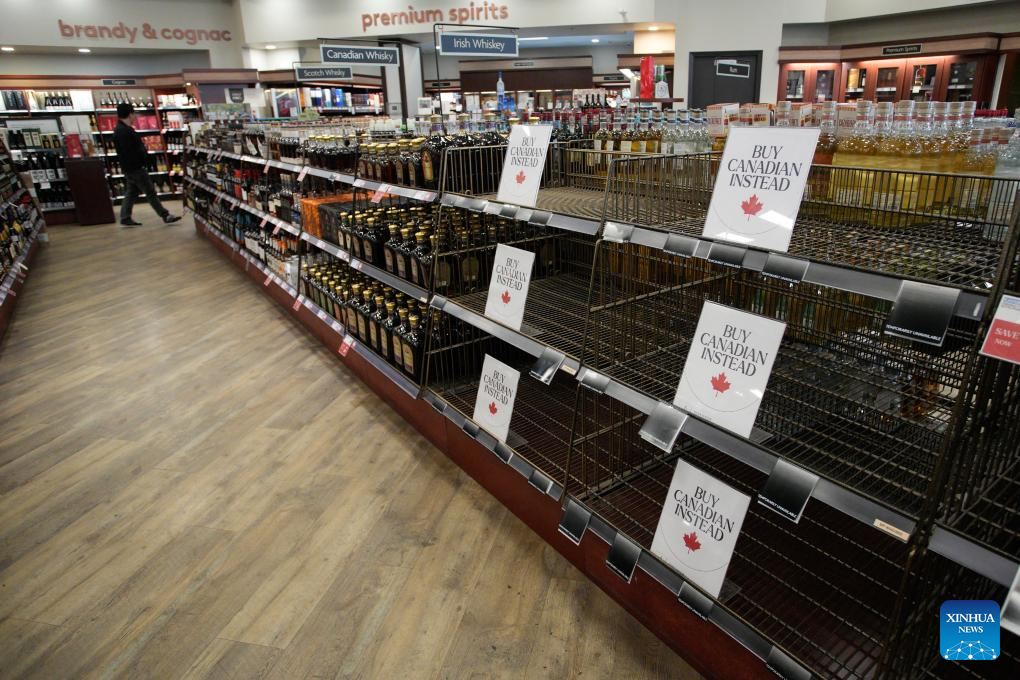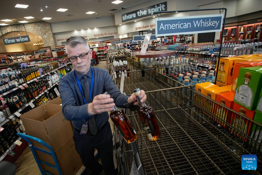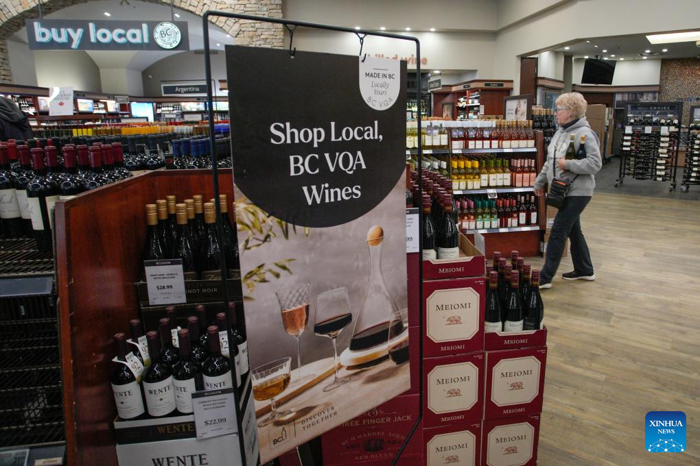 The provincial government of British Columbia announced on Monday its decision to remove U.S. alcohol products from the shelves of B.C. liquor stores operated by the B.C. Liquor Distribution Branch across the province, in response to tariffs and annexation threats from the United States. (Photo by Liang Sen/Xinhua)