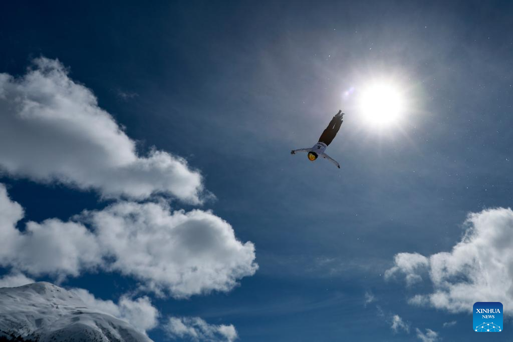 China's Qi Guangpu attends a practice session before the 2024-2025 FIS Freestyle Ski World Cup at the Livigno Aerials & Moguls Park, in Livigno, Italy, March 11, 2025. (Xinhua/Li Jing)