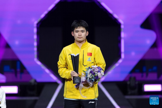 Lin Shidong of China poses for photos during the awarding ceremony of the WTT Champions Chongqing 2025 in Chongqing, southwest China, March 16, 2025. (Xinhua/Huang Wei)