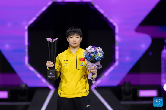 Sun Yingsha of China poses for photos during the awarding ceremony of the WTT Champions Chongqing 2025 in Chongqing, southwest China, March 16, 2025. (Xinhua/Huang Wei)