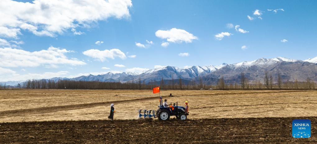 Farmers participate in a ceremony marking the start of spring farming in Codoi Township, Lhunzhub County of Lhasa, southwest China's Xizang Autonomous Region, March 16, 2025. Ceremonies marking the start of spring farming were held across Xizang on Sunday. The ceremony holds great significance as it marks the beginning of a new year's farming season and serves as a prayer for favorable weather and bountiful harvests. It is considered an important ritual in the farming regions of Xizang. (Xinhua/Jigme Dorje)