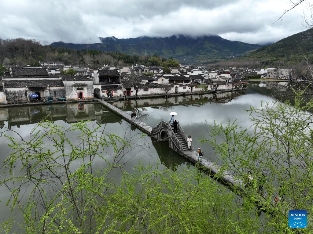 Tourists enjoy themselves at Hongcun Village, Hongcun Township of Yixian County, Huangshan City, east China's Anhui Province, March 14, 2025. (Xinhua/Zhang Chuanqi)
