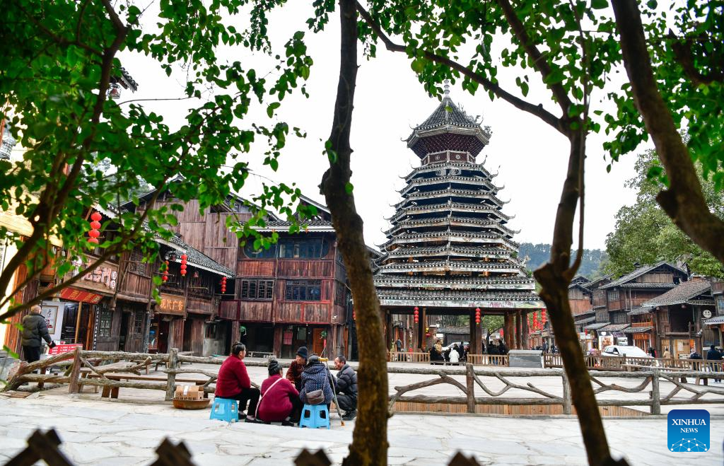 Visitors take photos at the Zhaoxing Dong Village in Liping County of Qiandongnan Miao and Dong Autonomous Prefecture, southwest China's Guizhou Province, March 17, 2025. Located in Liping County of Qiandongnan Miao and Dong Autonomous Prefecture, Zhaoxing Dong Village is home to over a thousand households of the Dong ethnic group. The traditional architectural style and rich cultural heritage of the Dong ethnic group are well-preserved.
