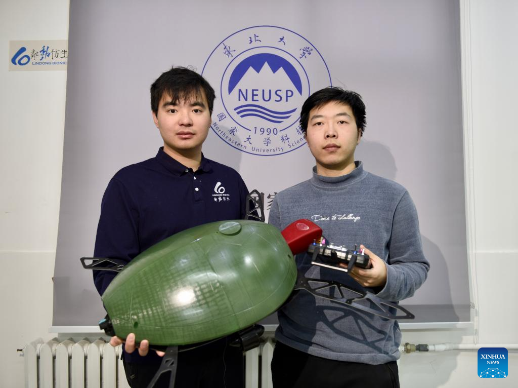 Chu Yichen showcases underwater bionic robots at Lindong Bionic technology co., ltd. in Shenyang, northeast China's Liaoning Province, March 18, 2025. (Xinhua/Yang Qing)