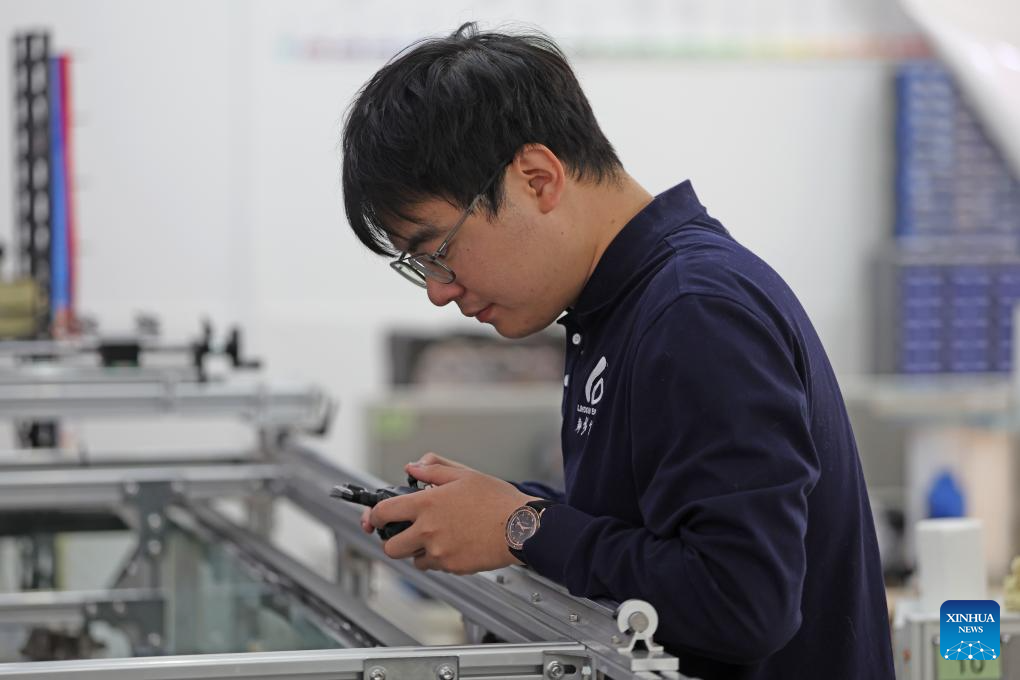 Chu Yichen assembles underwater bionic robotic gripper at Lindong Bionic technology co., ltd. in Shenyang, northeast China's Liaoning Province, March 18, 2025. (Xinhua/Wu Qinghao)