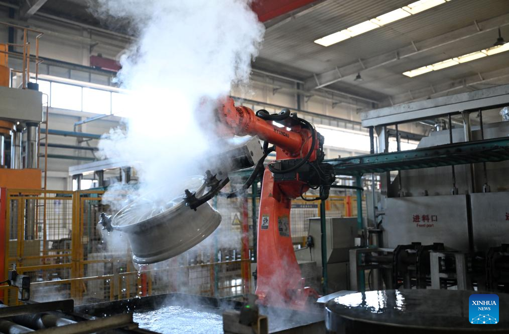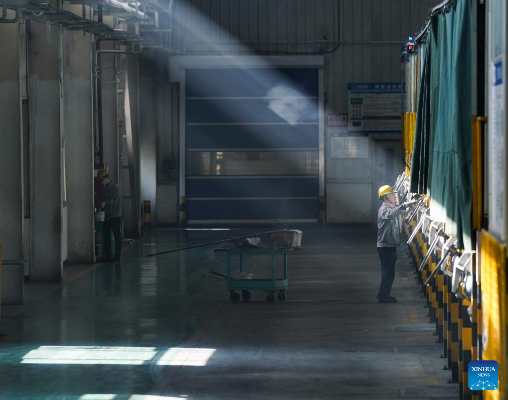 This photo taken on March 19, 2025 shows a view of a workshop at an aluminum material company in the Hongqi Canal Economic and Technological Development Zone of Linzhou City, central China's Henan Province. (Xinhua/Li Jianan)