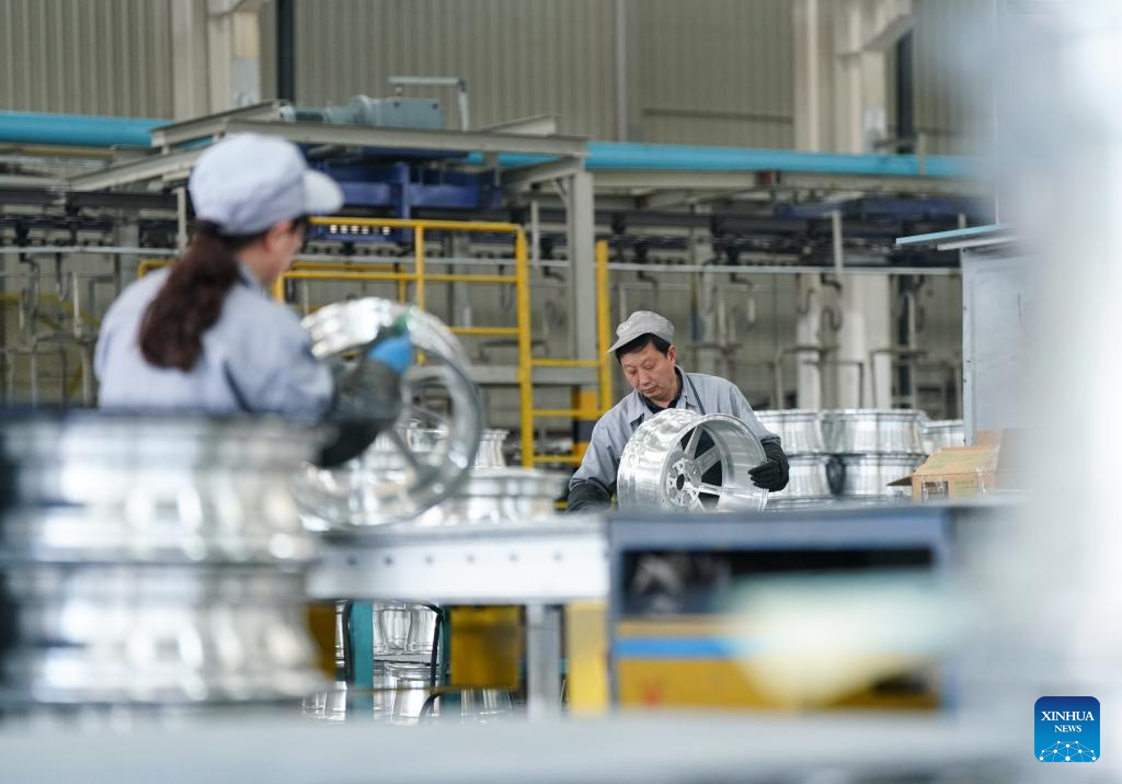 Staff members work at a workshop of an aluminum material company in the Hongqi Canal Economic and Technological Development Zone of Linzhou City, central China's Henan Province, March 19, 2025. (Xinhua/Fan Yuqing)
