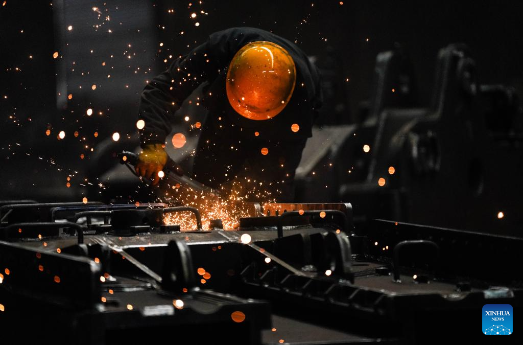 A staff member works at a workshop of Linzhou Heavy Machinery Group Co., Ltd. in the Hongqi Canal Economic and Technological Development Zone of Linzhou City, central China's Henan Province, March 19, 2025. (Xinhua/Li Jianan)