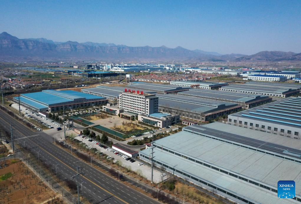 An aerial drone photo taken on March 19, 2025 shows a view of the Hongqi Canal Economic and Technological Development Zone of Linzhou City, central China's Henan Province. (Xinhua/Li Jianan)