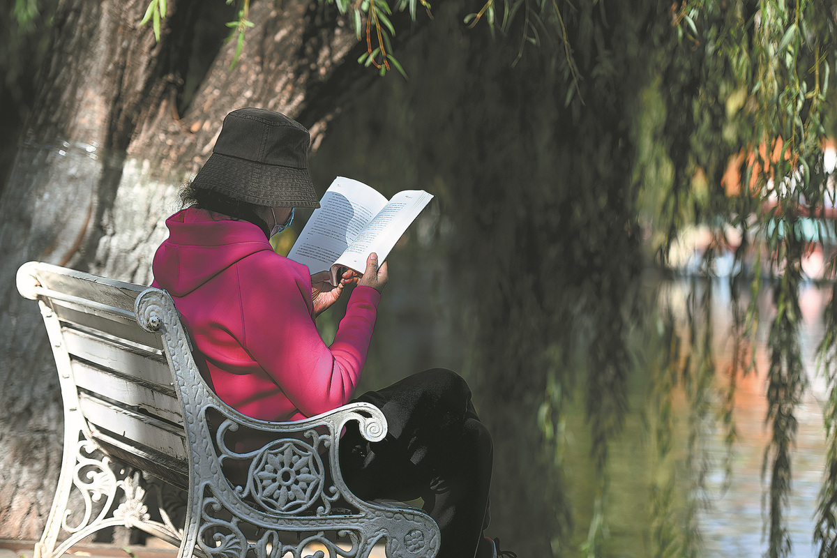 A woman reads in a park in Kunming, Yunnan province. (Li Jiaxian/China News Service)