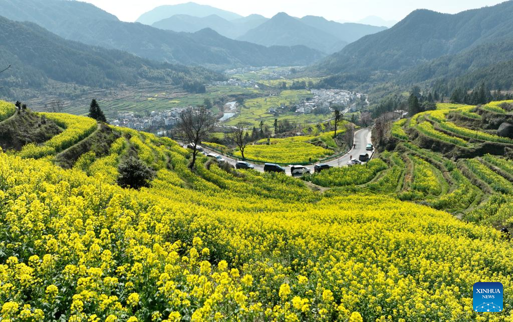 Blooming cole flowers are pictured in Yantian Village of Wuyuan County, east China's Jiangxi Province, March 20, 2025. (Xinhua/Wan Xiang)
