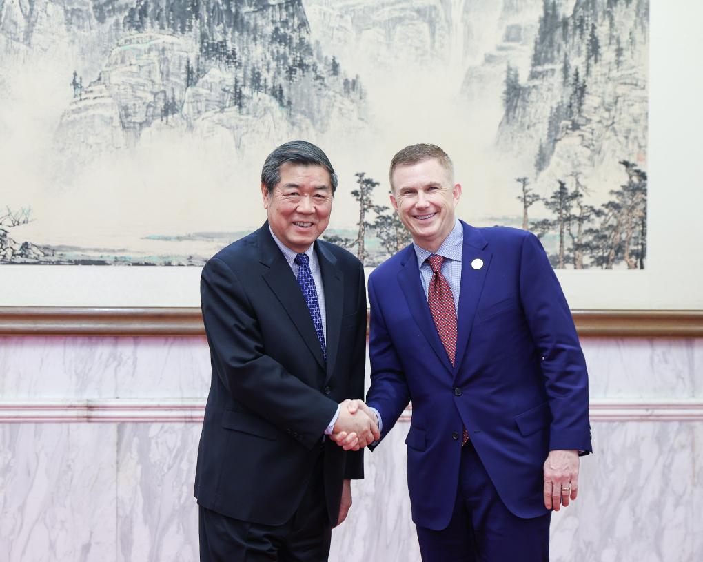 Chinese Vice Premier He Lifeng, also a member of the Political Bureau of the Communist Party of China Central Committee, meets with Brian Sikes, president and CEO of Cargill, in Beijing, capital of China, March 23, 2025. (Xinhua/Liu Bin)