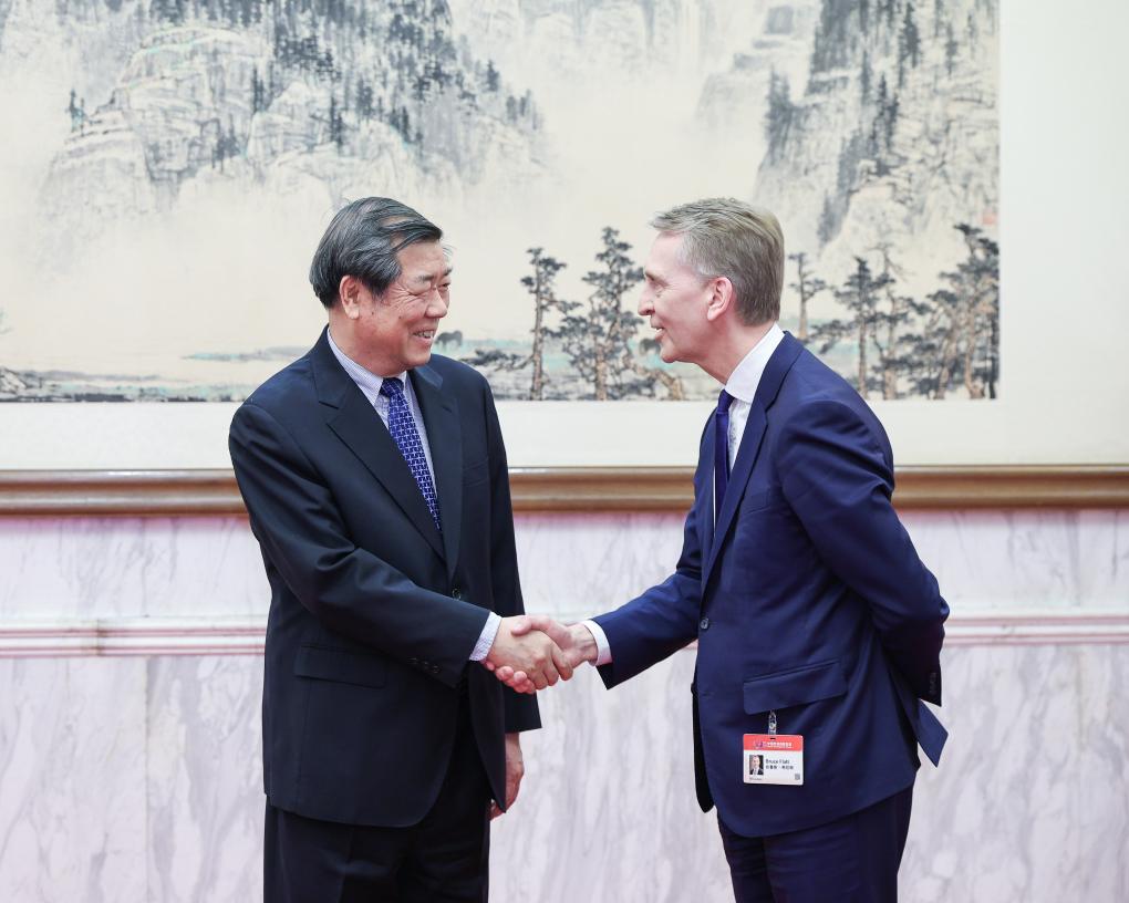 Chinese Vice Premier He Lifeng, also a member of the Political Bureau of the Communist Party of China Central Committee, meets with Bruce Flatt, chair and CEO of Brookfield Asset Management, in Beijing, capital of China, March 23, 2025. (Xinhua/Liu Bin)